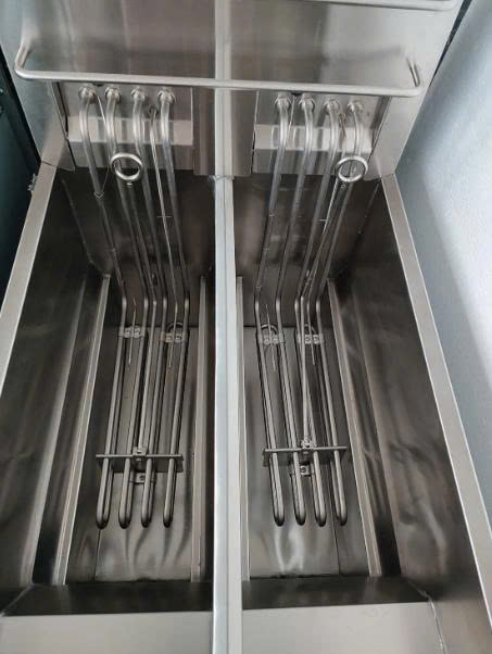 👉 Một bếp chiên nhúng điện 2 ngăn dạng đứng, tích hợp điều khiển kỹ thuật số + hệ thống lọc dầu ngay trong máy, giúp giữ dầu sạch – giữ nhiệt ổn – giữ chất lượng món chiên đồng đều suốt cả ca làm việc.