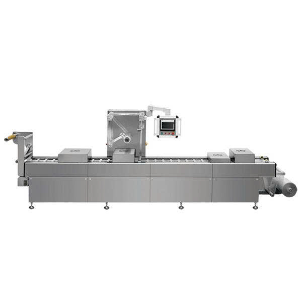 Đây là dòng máy đóng gói công nghiệp tự động cao cấp, sử dụng công nghệ thermoforming (nhiệt định hình) để tạo khay bao bì trực tiếp từ cuộn màng nhựa. Máy đồng thời thực hiện các công đoạn: