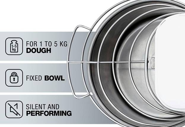 Rebecca sử dụng lò xo xoắn trung tâm, đảm bảo bột được trộn đều từ trong ra ngoài, duy trì cấu trúc gluten tự nhiên.